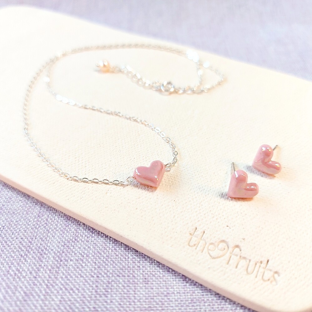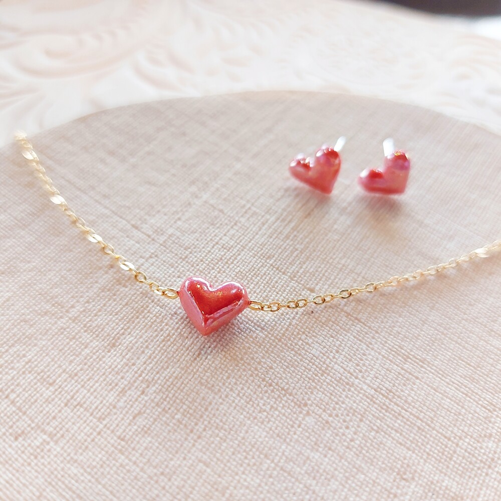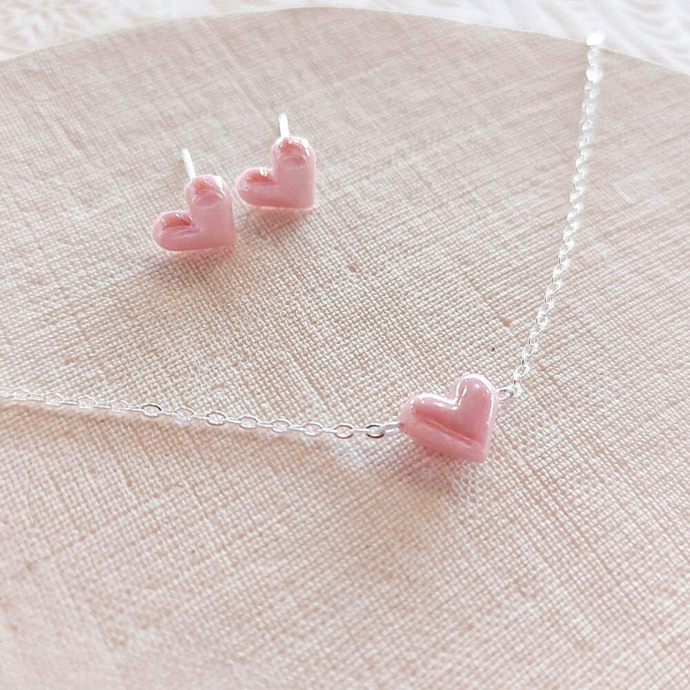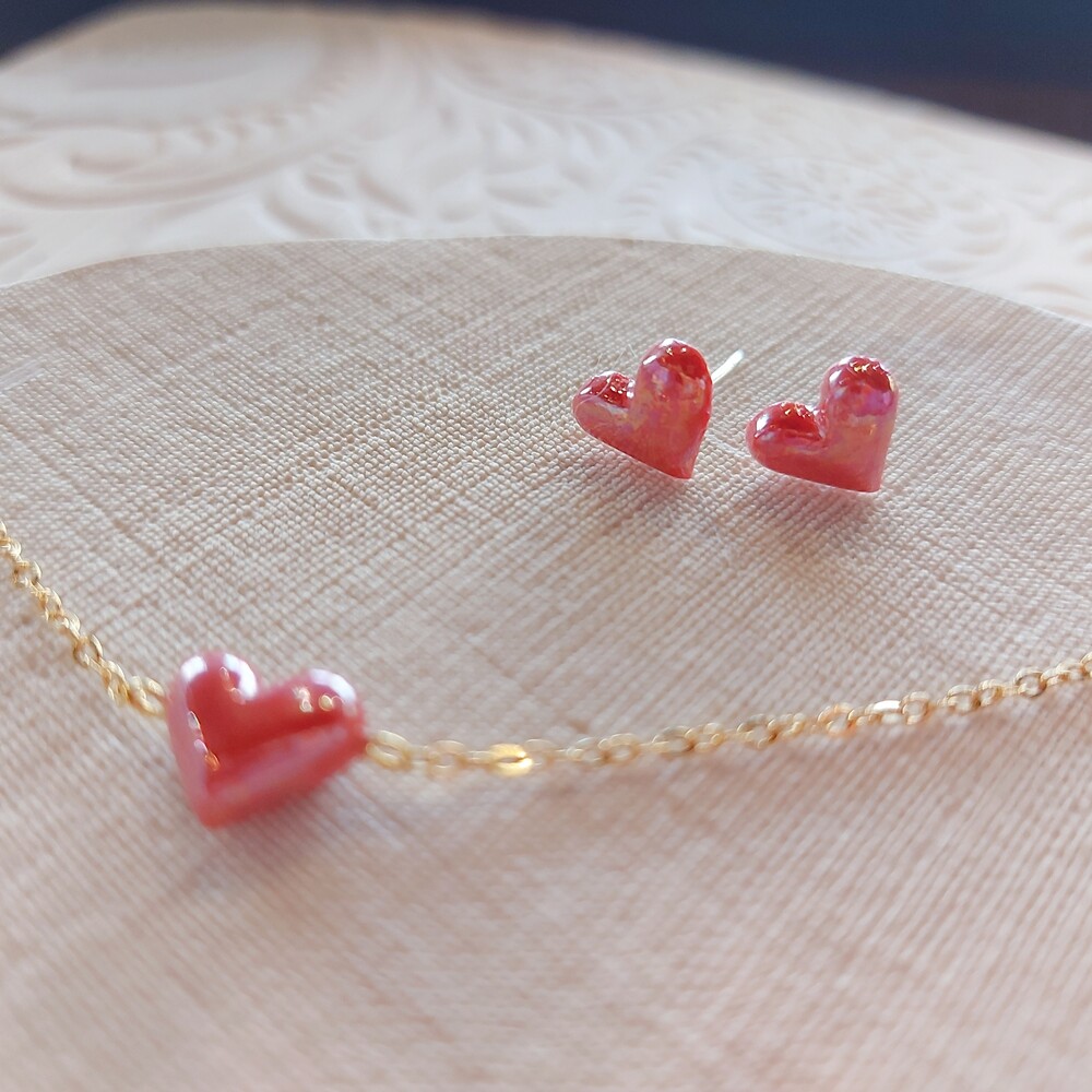 - 오로라 하트 목걸이 & 귀걸이 세트-