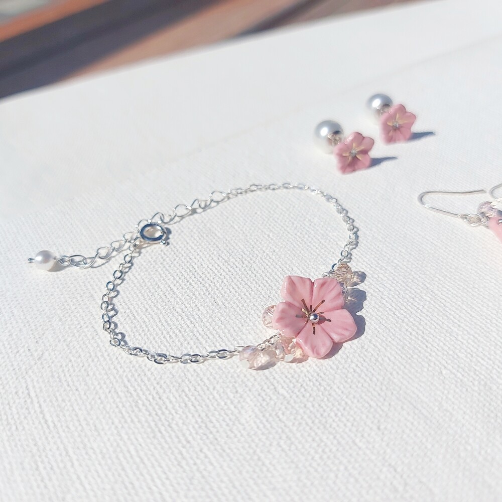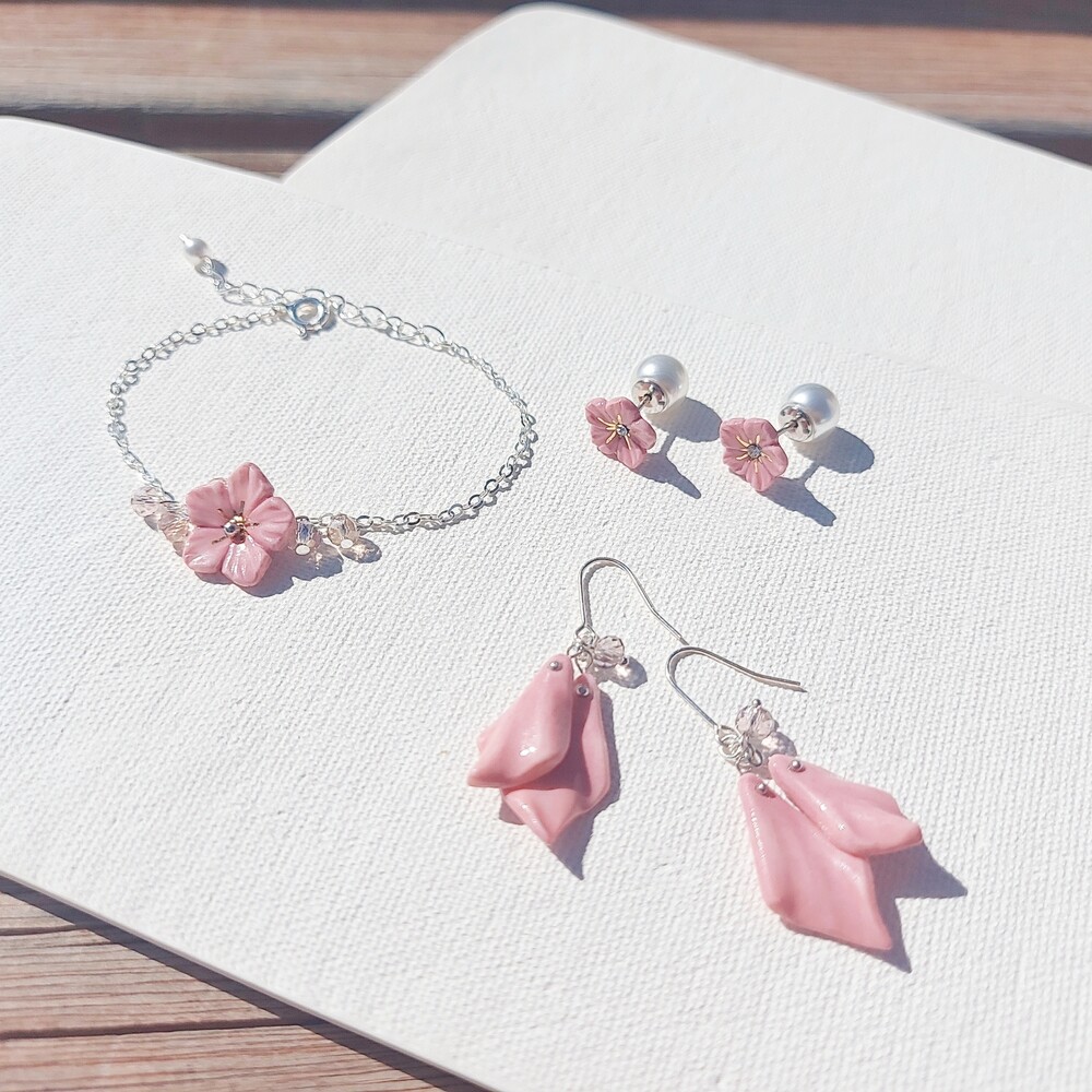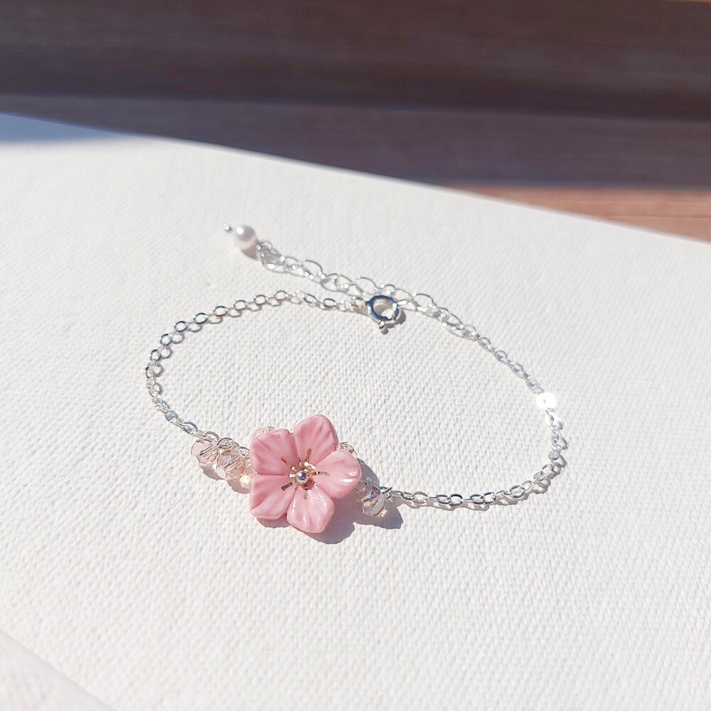 핸드메이드 도자(백자), 925silver 은체인, 24K 골드 수금, 핑크 크리스탈, 스와로브스키 진주 (여유 체인 부분)