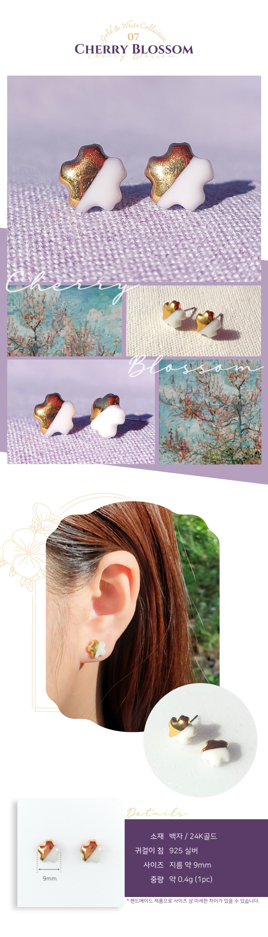 골드 백자 벚꽃 귀걸이•Cherry Blossom
