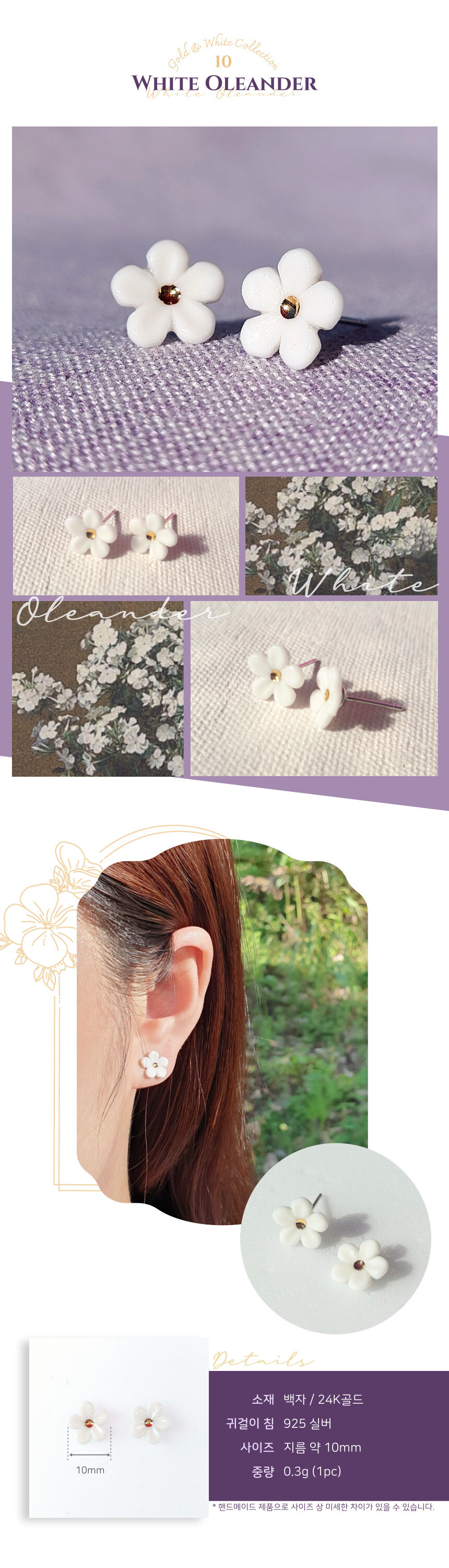 골드 백자 화이트 올랜더 귀걸이•White Oleander