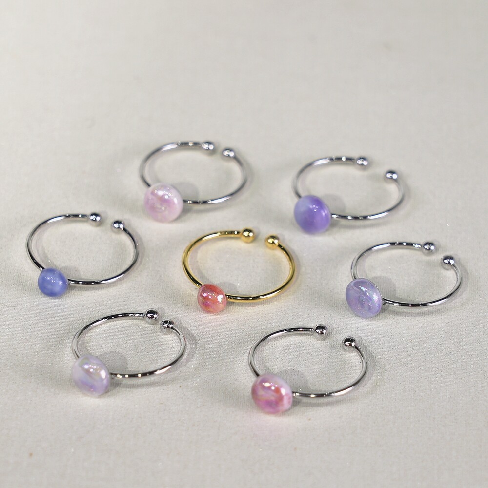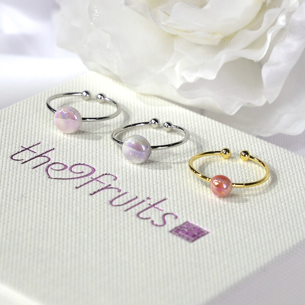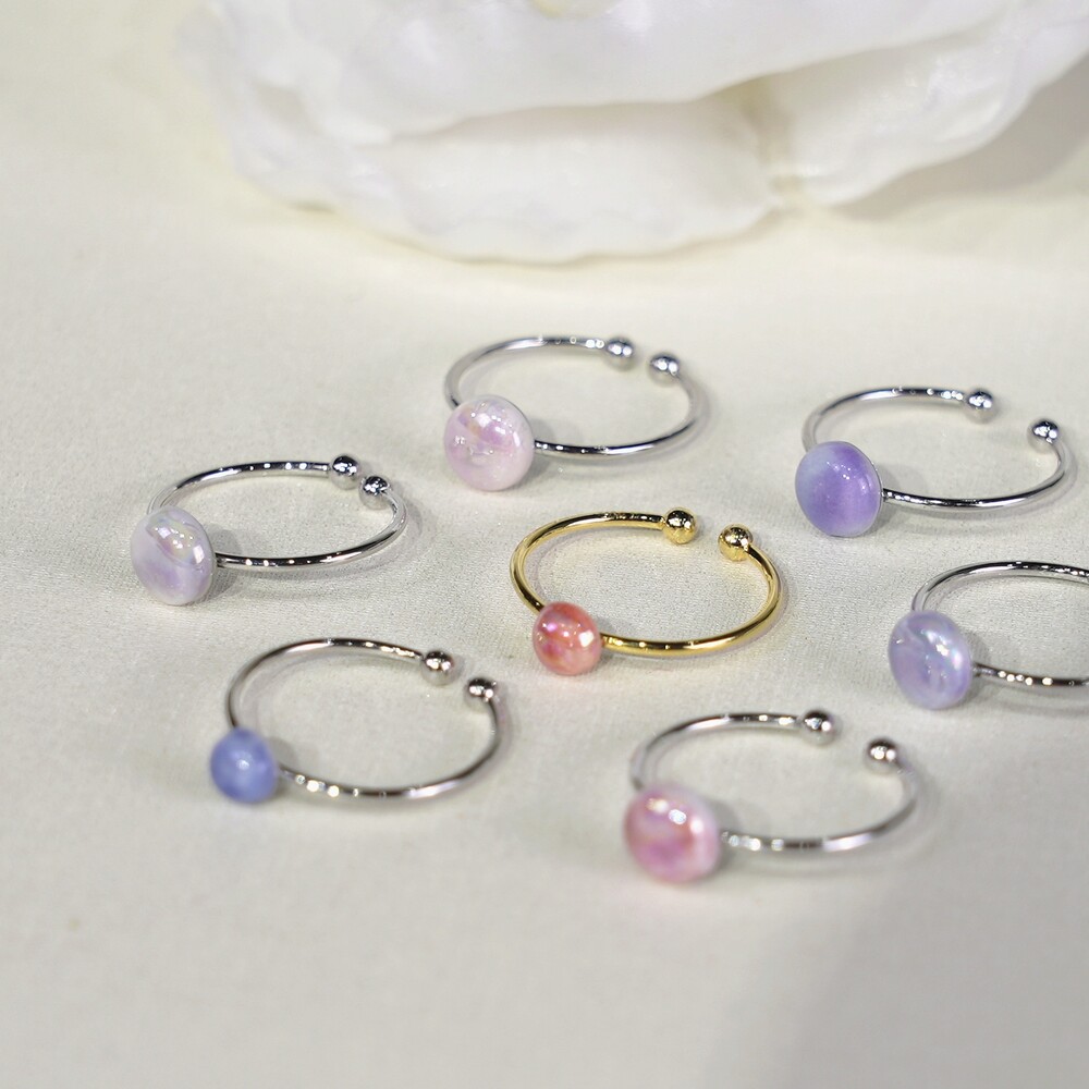 오로라 빛이 나는 백자 반지입니다.