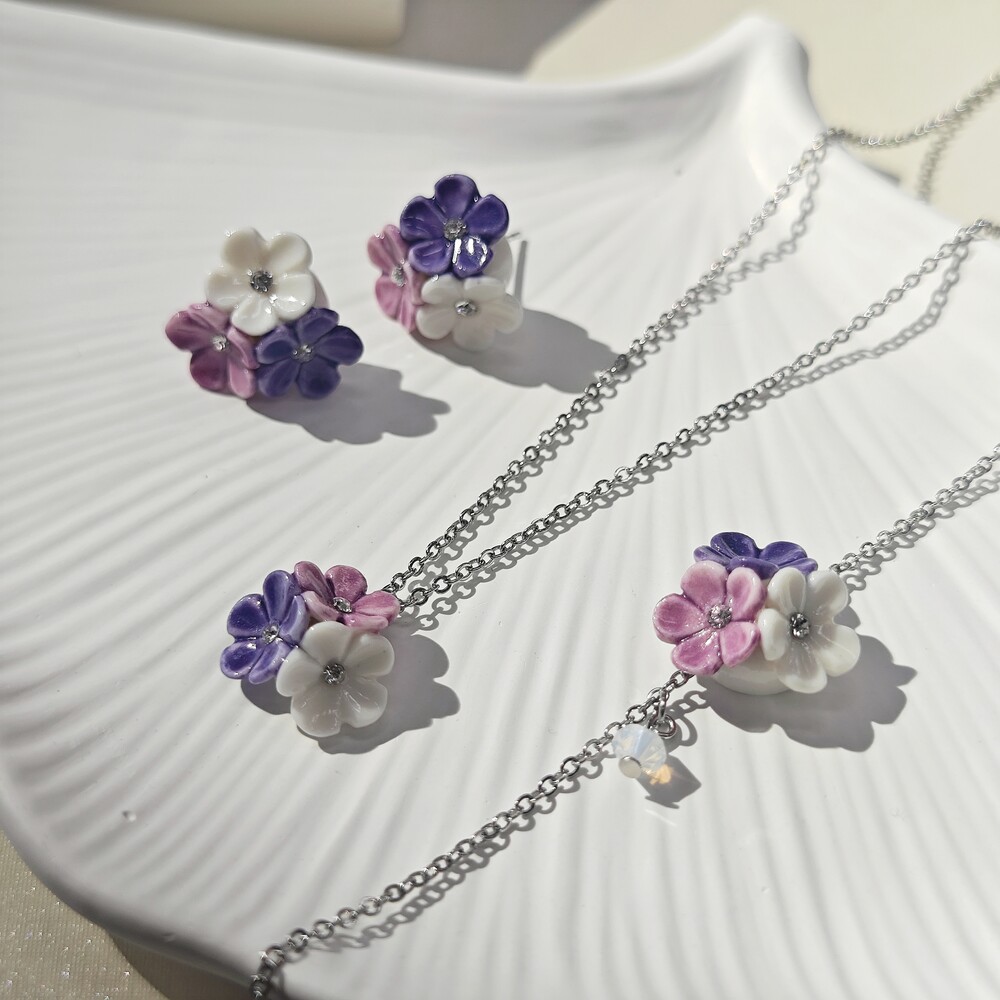 세 송이의 작은 꽃이 모여 하나의 꽃구를 이루는 디자인으로,