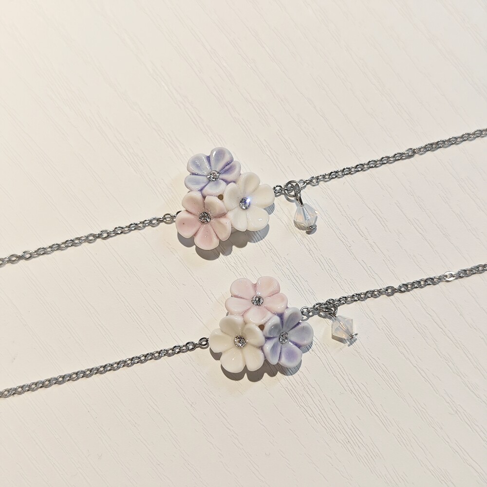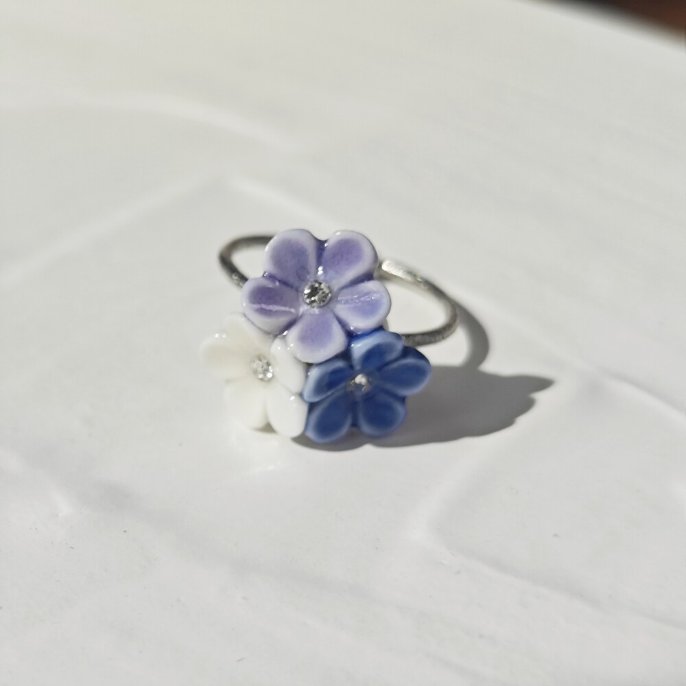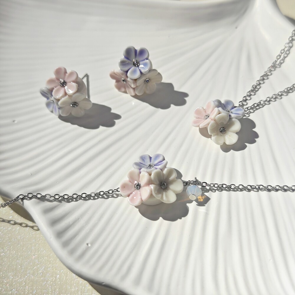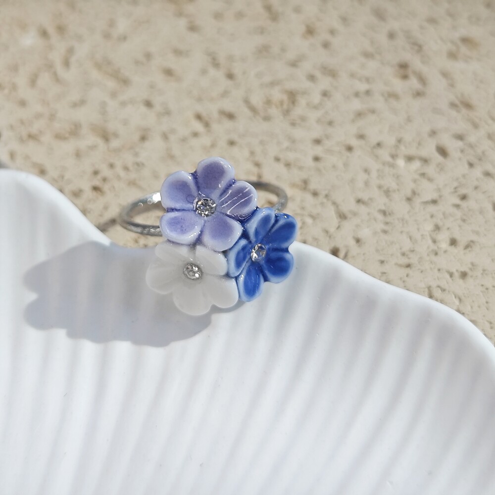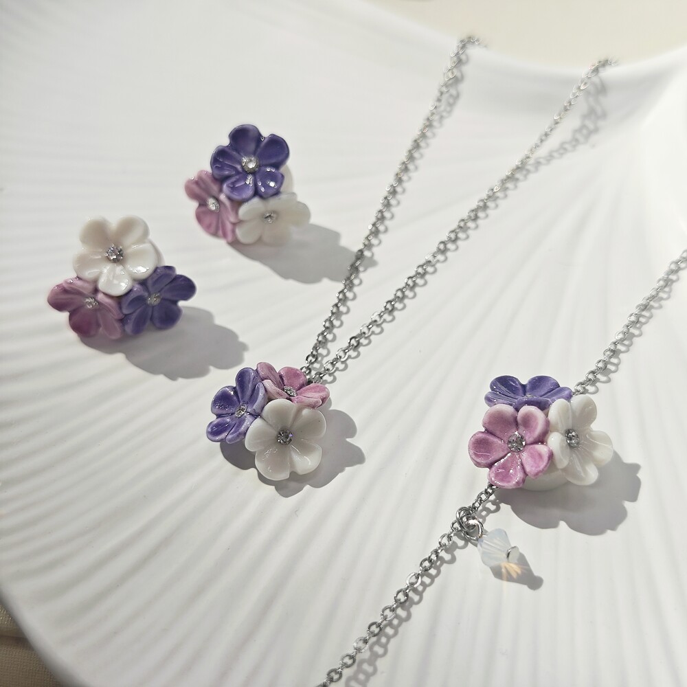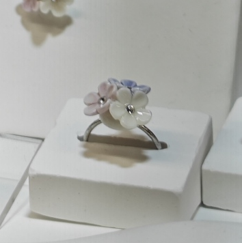 세 송이의 작은 꽃이 모여 하나의 꽃구를 이루는 디자인으로,