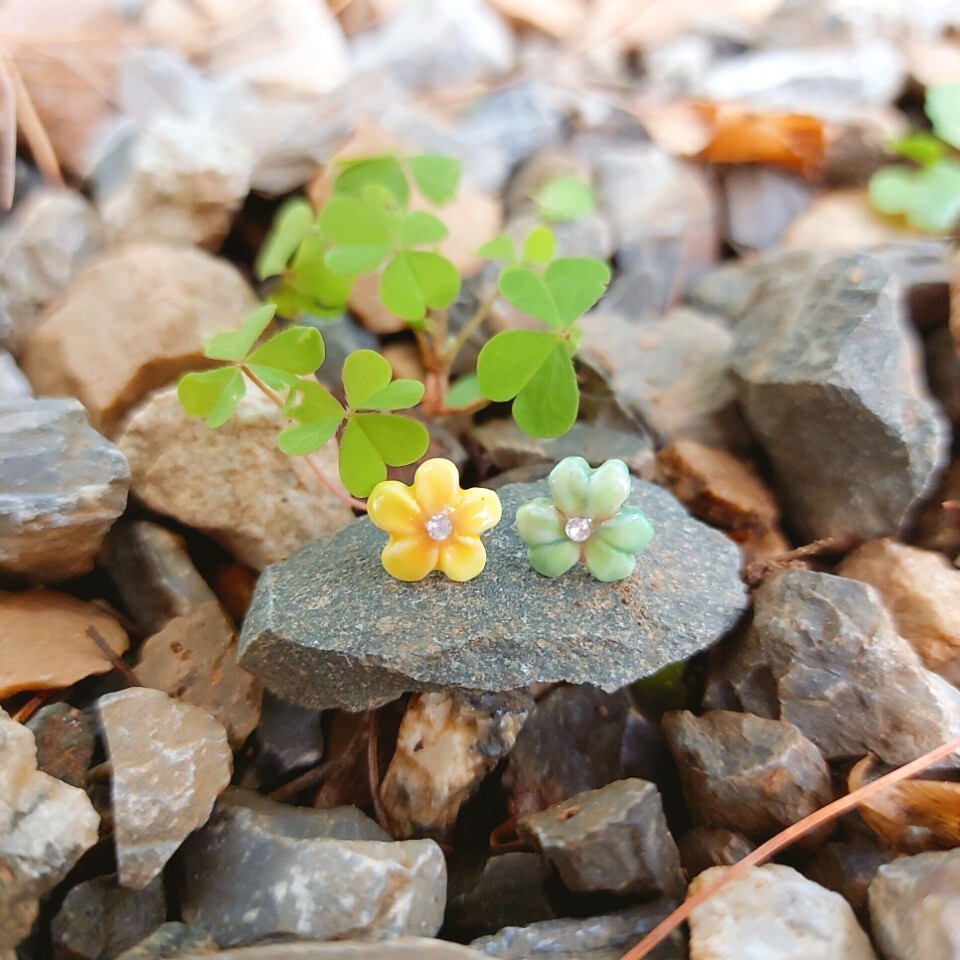 하트 모양인 세 이파리, 산뜻하고 밝은 꽃,