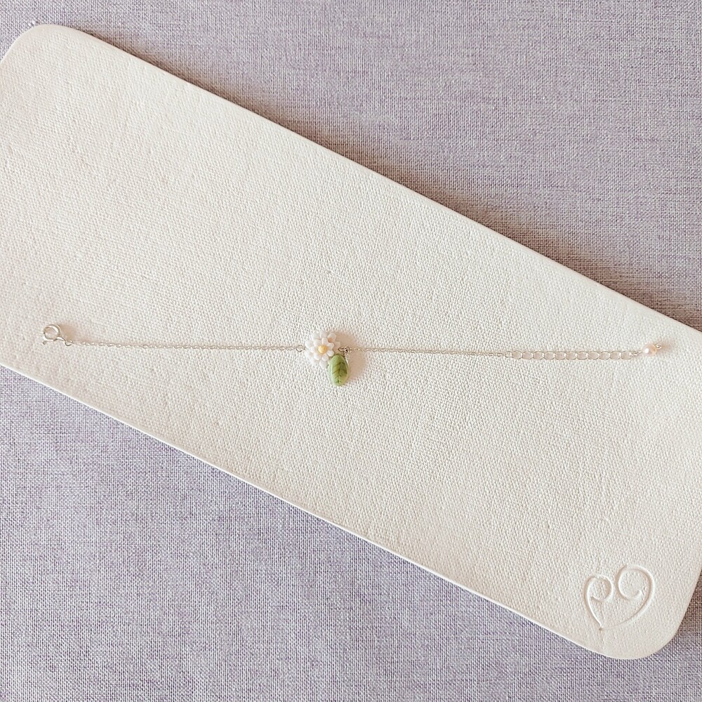핸드메이드 도자(백자), 925silver 은체인, 스와로브스키 진주(여유 체인 부분)