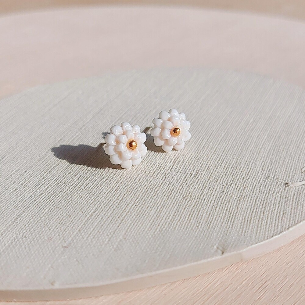 - White Zinnia Earrings Shine -