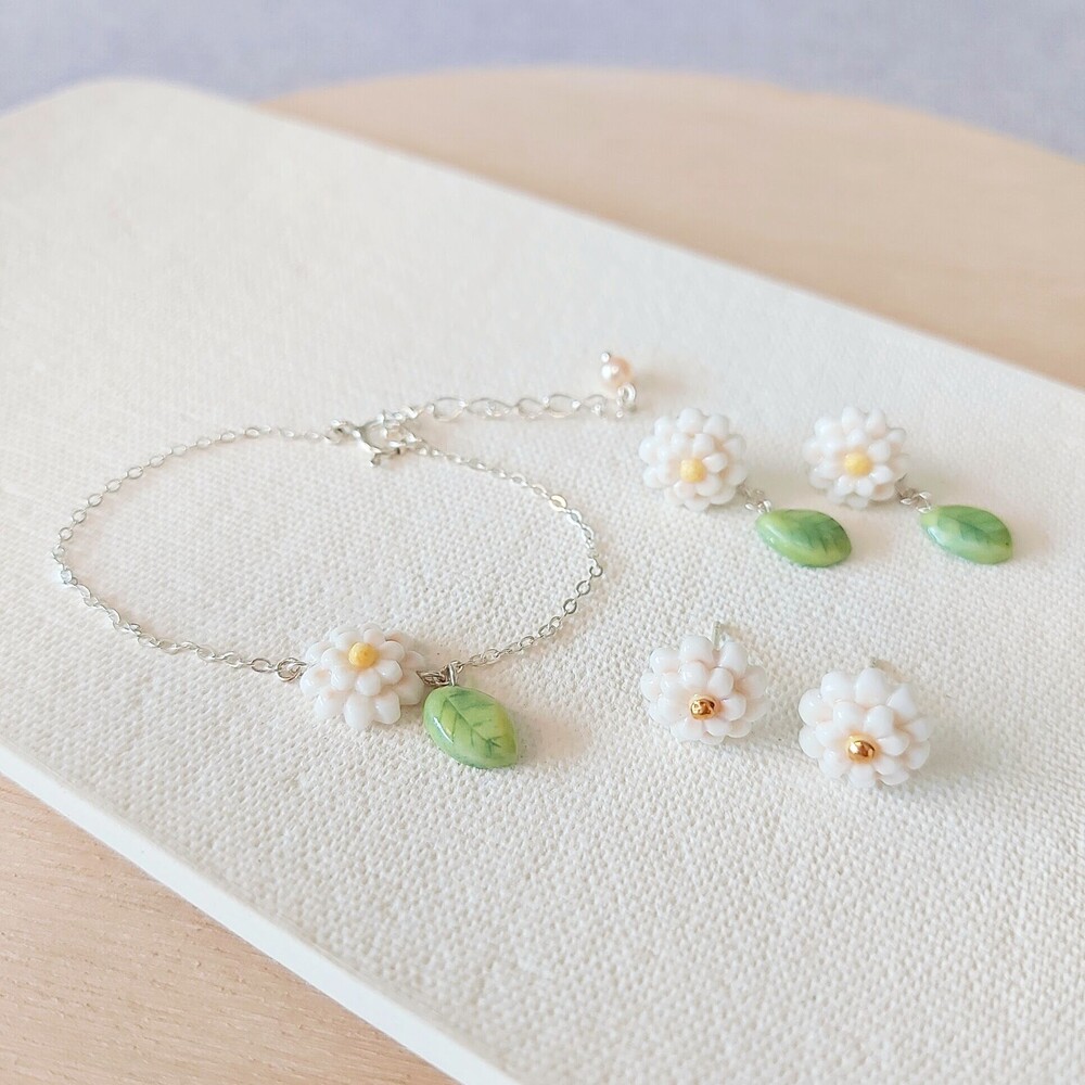 - 하얀 백일홍 귀걸이 Shine -