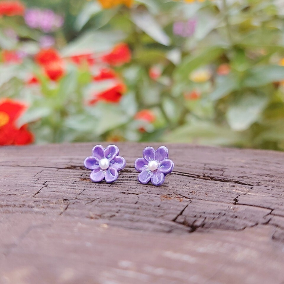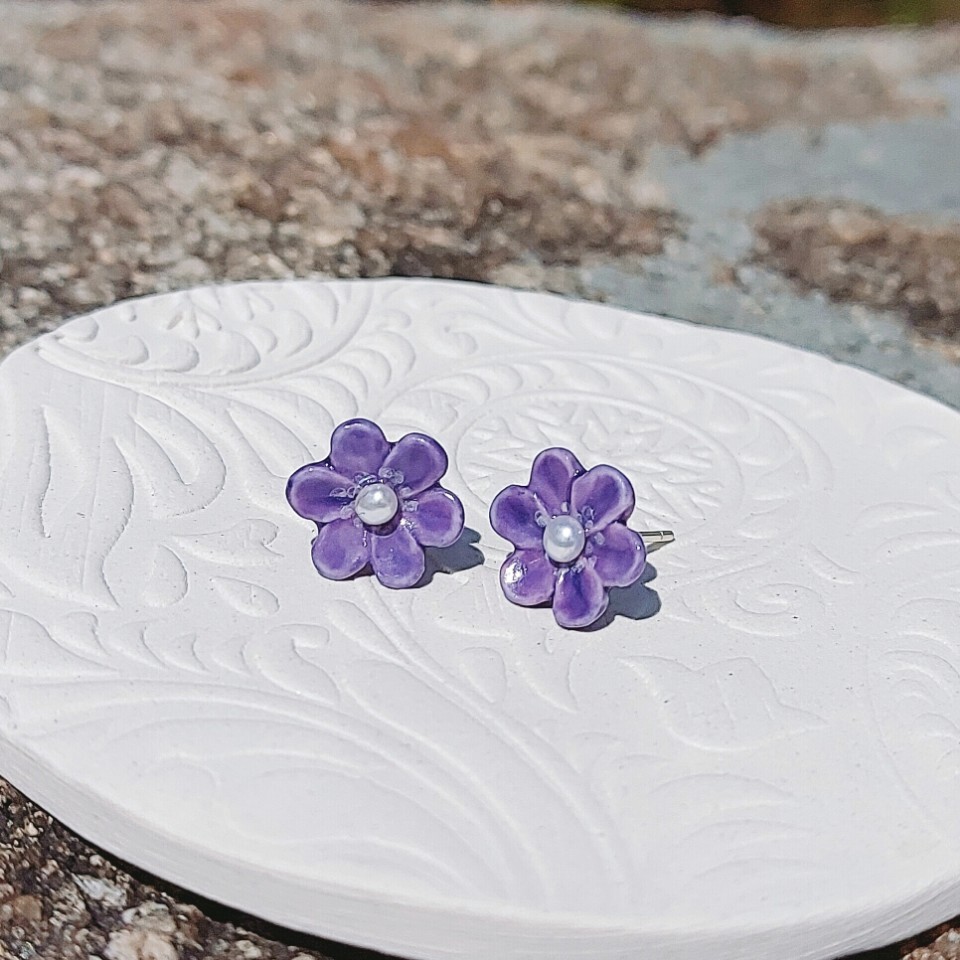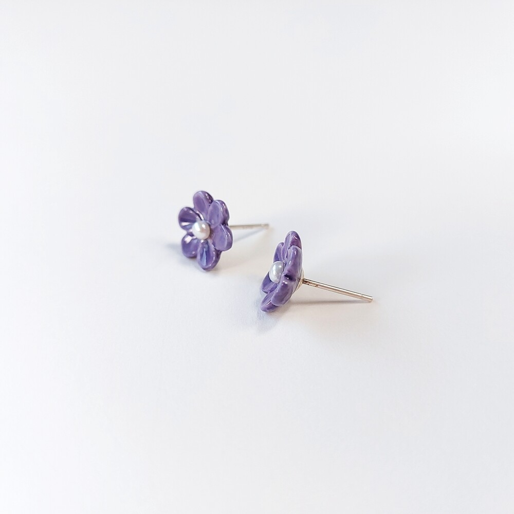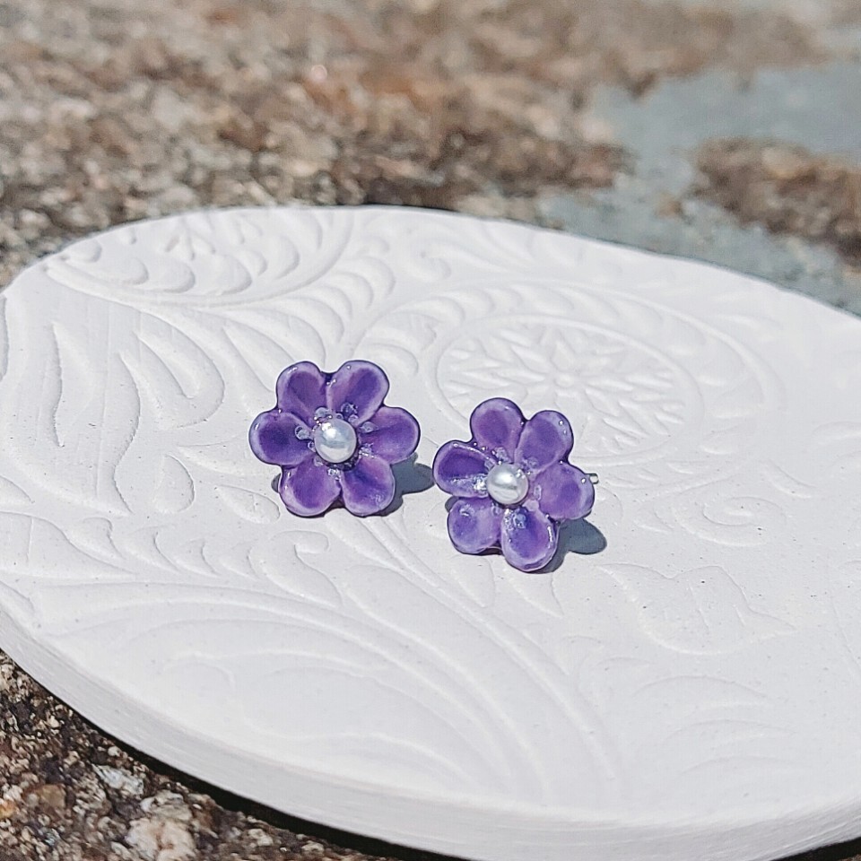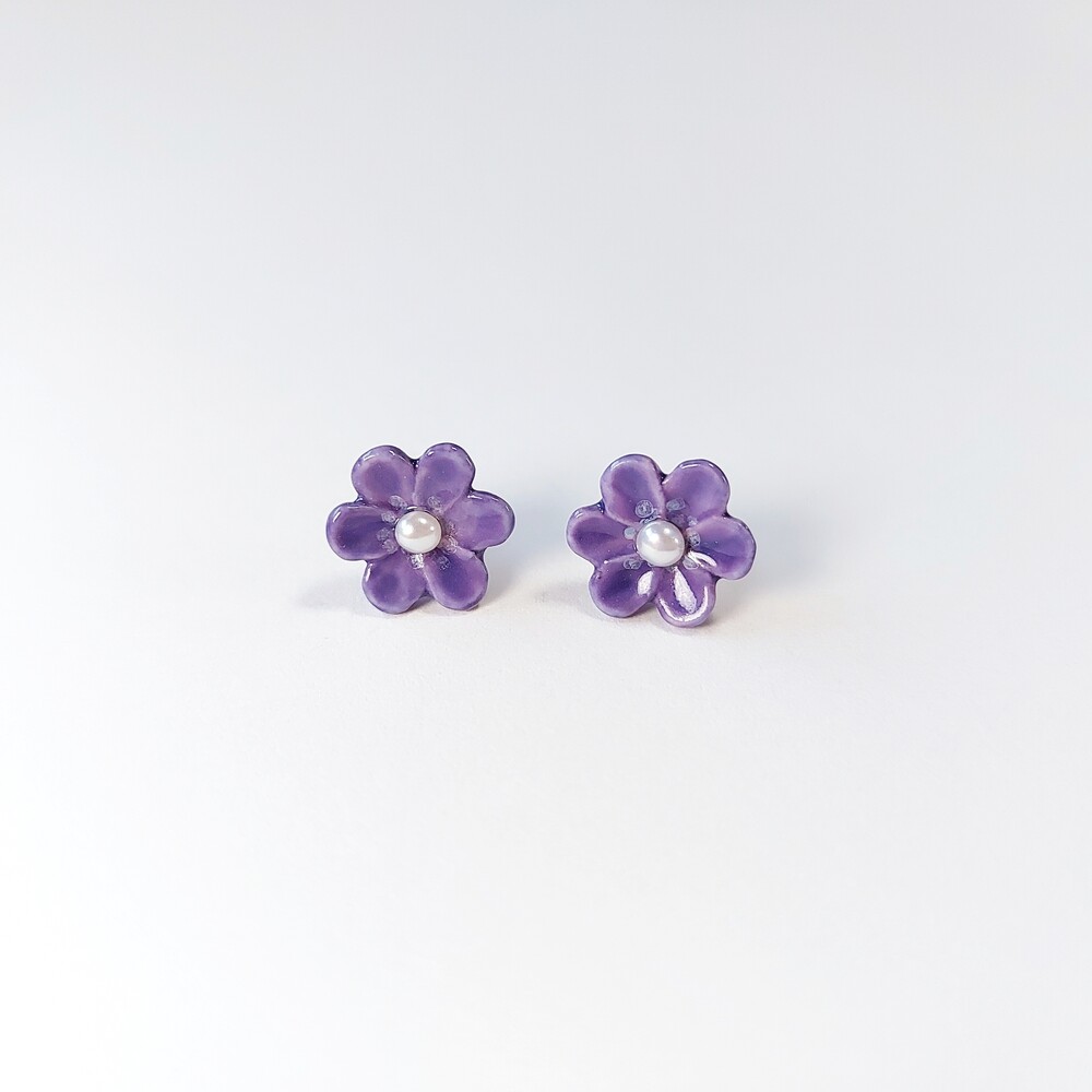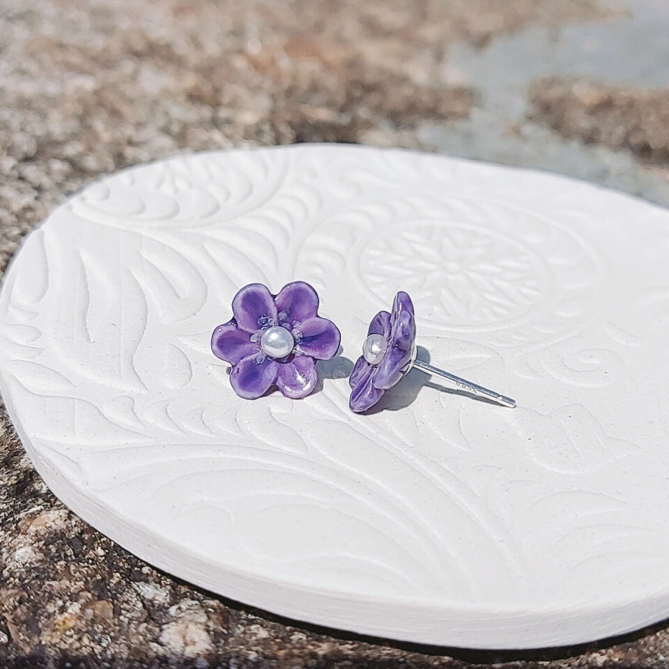Handmade porcelain, Sterling silver earring posts & clutch With freshwater pearl